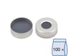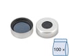 | Alu-Bördelkappen N 20-L, silber Loch, Silikon blau/ PTFE farblos, Härte: 45° shore A, Septendicke: 3 mm, VE=100 | |